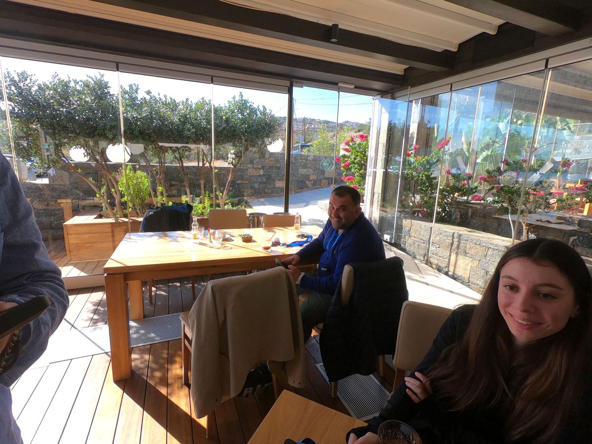 Αφού τελείωσε η ξενάγηση και πήραμε και τις απαραίτητες αναμνηστικές φωτογραφίες επίβαστήκαμε στα καραβάκια και επιστρέψαμε πίσω στην Πλάκα και από εκεί οδικώς κινηθήκαμε δίπλα στην Ελούντα όπου μας περίμενε ένα πολύ πλούσιο γεύμα στην ταβέρνα ΠΥΡ-ΟΛΑ .