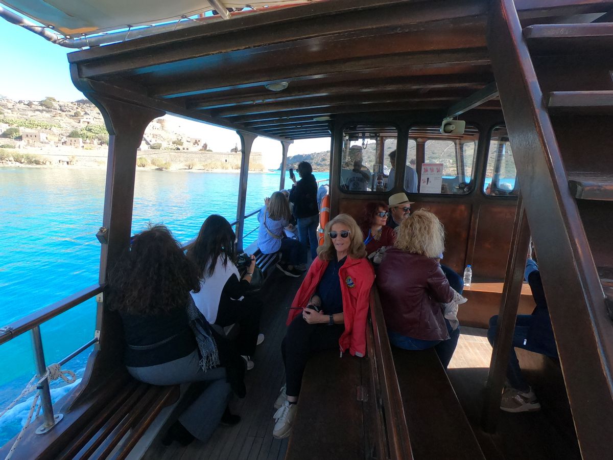 Μετά από μία διαδρομή μία περίπου ώρας φτάσαμε στην Πλάκα και σταματήσαμε για καφέ στο PORTA . Αφού απολαύσαμε τον καφέ μας εφοδιαστήκαμε με τα ακουστικά τα οποία μας βοήθησαν στην ξενάγηση και πήραμε τα καραβάκια για Σπιναλόγκα.