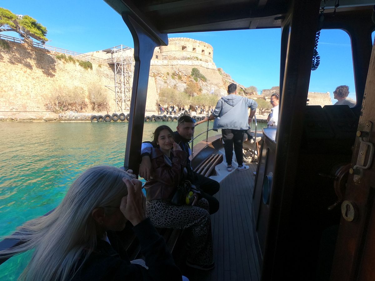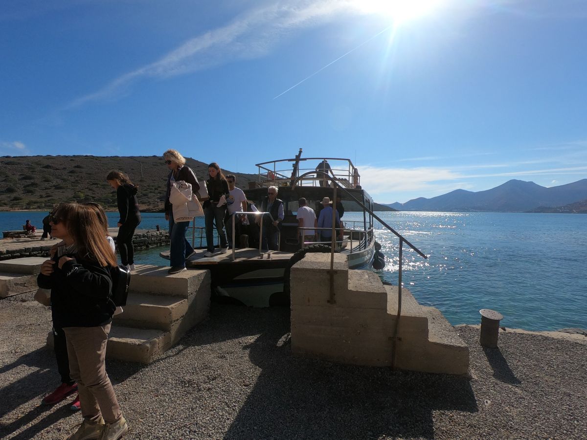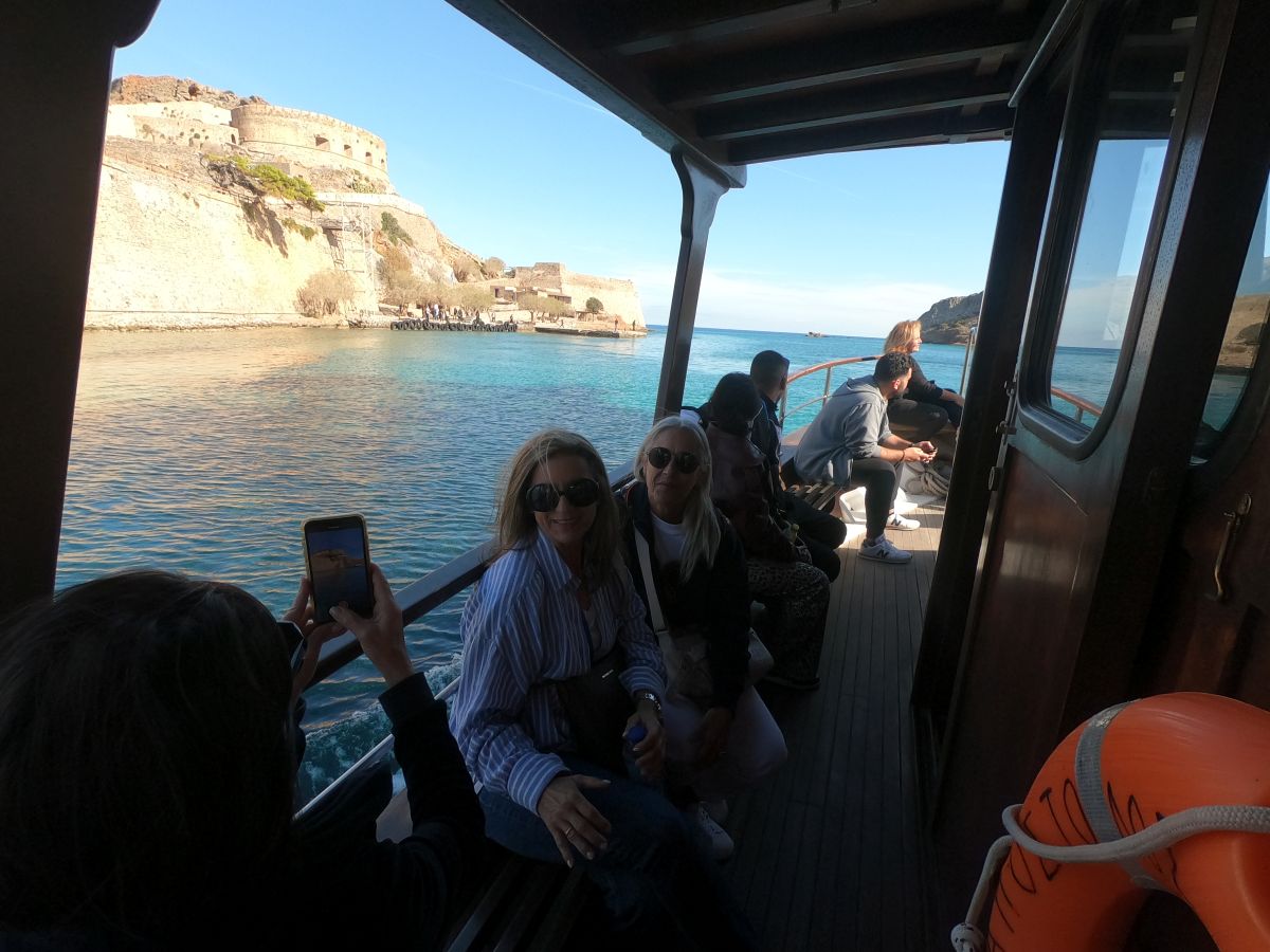 Μετά από μία διαδρομή μία περίπου ώρας φτάσαμε στην Πλάκα και σταματήσαμε για καφέ στο PORTA . Αφού απολαύσαμε τον καφέ μας εφοδιαστήκαμε με τα ακουστικά τα οποία μας βοήθησαν στην ξενάγηση και πήραμε τα καραβάκια για Σπιναλόγκα.
