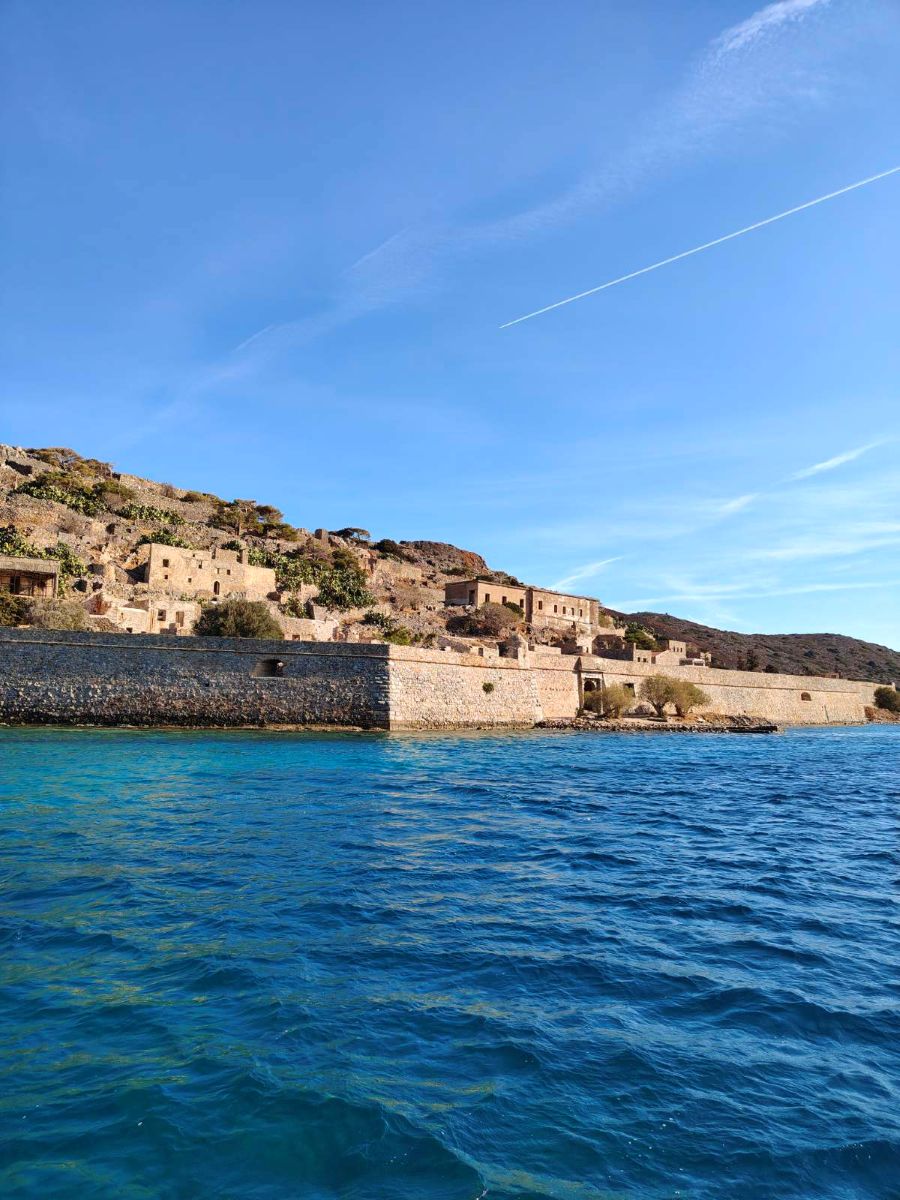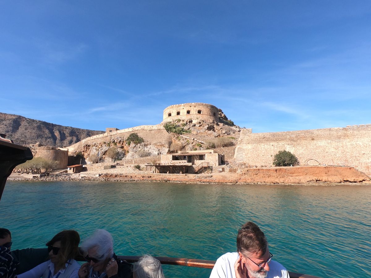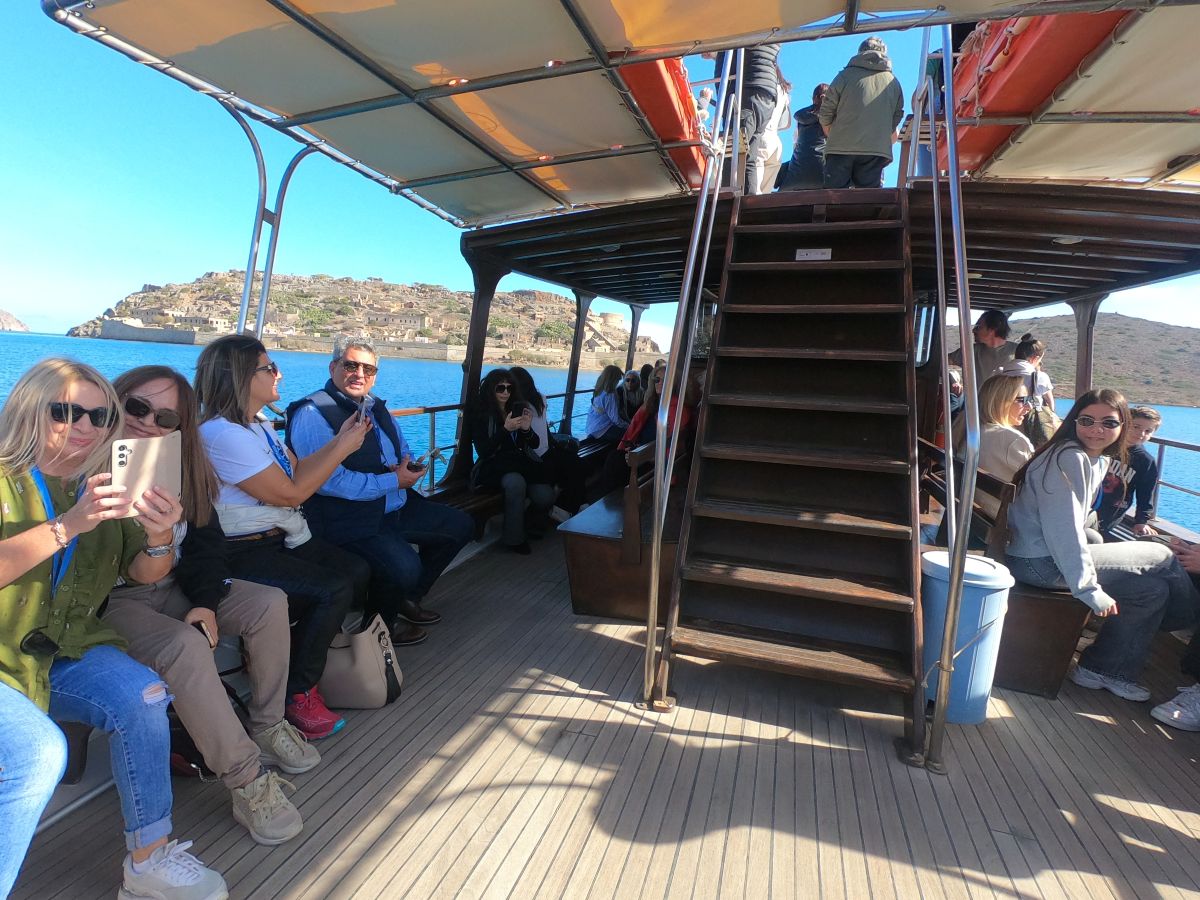 Μετά από μία διαδρομή μία περίπου ώρας φτάσαμε στην Πλάκα και σταματήσαμε για καφέ στο PORTA . Αφού απολαύσαμε τον καφέ μας εφοδιαστήκαμε με τα ακουστικά τα οποία μας βοήθησαν στην ξενάγηση και πήραμε τα καραβάκια για Σπιναλόγκα.