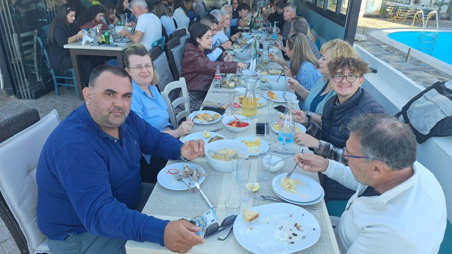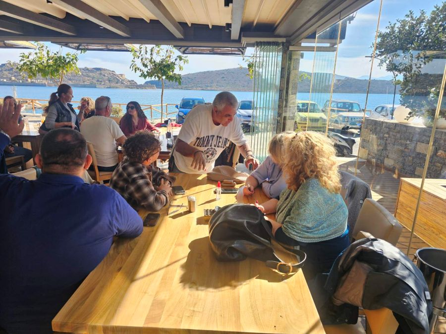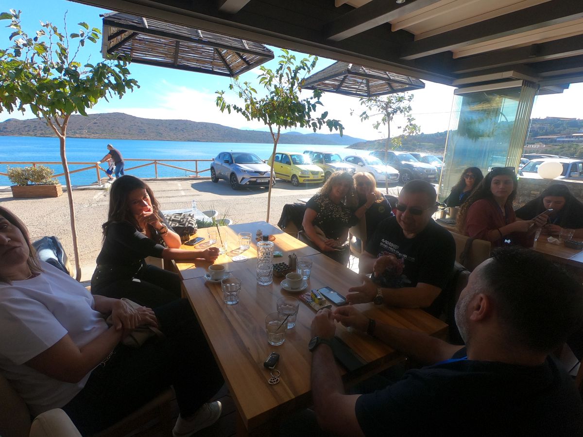 Αφού τελείωσε η ξενάγηση και πήραμε και τις απαραίτητες αναμνηστικές φωτογραφίες επίβαστήκαμε στα καραβάκια και επιστρέψαμε πίσω στην Πλάκα και από εκεί οδικώς κινηθήκαμε δίπλα στην Ελούντα όπου μας περίμενε ένα πολύ πλούσιο γεύμα στην ταβέρνα ΠΥΡ-ΟΛΑ .