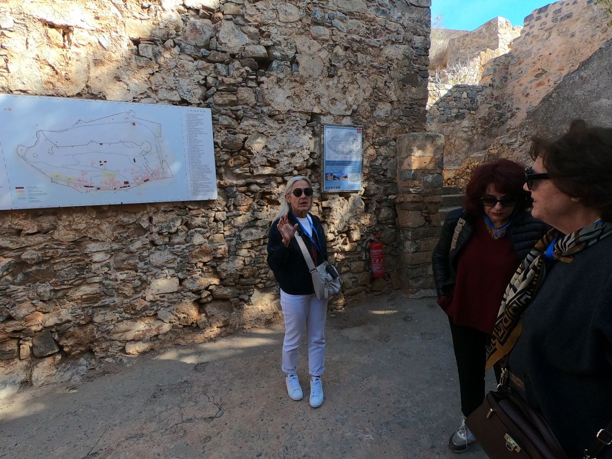 Η Σίσσυ ανέλαβε να μας ξεναγήσει στο νησί. Ήταν μία καταπληκτική ξενάγηση από την οποία μάθαμε πάρα πολλά πράγματα για την Σπιναλόγκα και όλοι μείναμε κατά ενθουσιασμένοι.